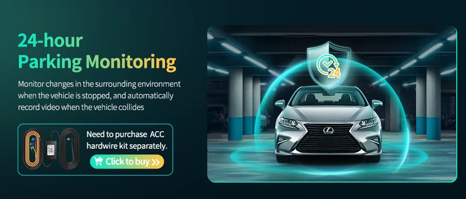 Monitor changes in the surrounding environment when the vehicle is stopped, and automatically record video when the vehicle collides(Need to purchase ACC hardwire kit separately)