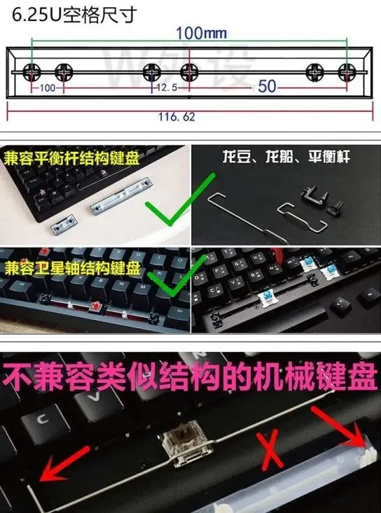 Mechanical keyboard suitable for cross Swith, support 61 left shift 64/84//71/96/980/100/104/108 and other key positions of conventional space 6.25U mechanical keyboard