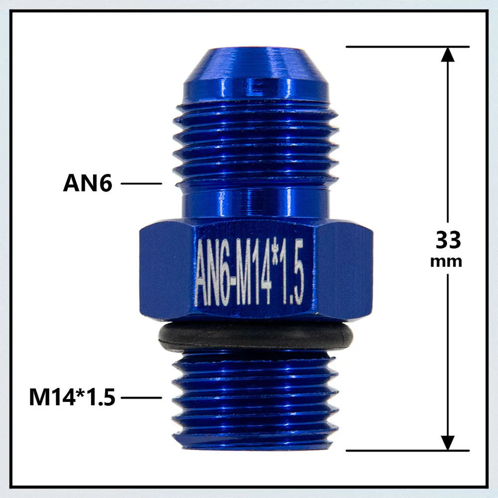 This 1Pcs Aluminum Alloy AN6/AN8/AN10/AN12 to AN/M14/M16/M18x1.5 Fuel Hose Adapter is designed for high-performance automotive applications, particularly for turbo modification and oil cooler systems. Made of high-quality aluminum, it comes in black or blue color options, adding a sleek and stylish look to your car. The adapter is designed for easy installation with fast connection, ensuring a secure, leak-proof seal.