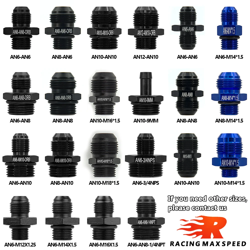 Size Options: AN6, AN8, AN10, AN12 to M14x1.5, M16x1.5, M18x1.5, 3/4NPS