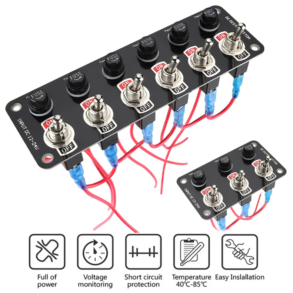 3 Gang/6 Gang Toggle Switch Panel 12V/24V On/Off Rocker Toggle Switch with 10A Fuse Racing Cars RV Camper Marine Boat Yacht