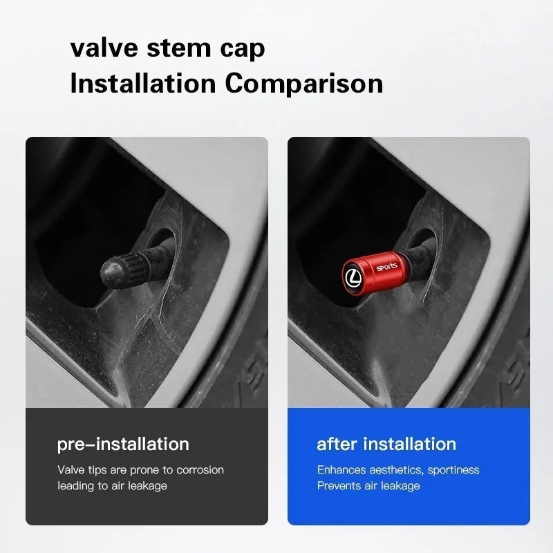 4Pcs Car Styling Wheel Tires Bolt-in Valve Caps Badge Decor For Lexus IS250 IS200 CT200h GS300 LS430 RX450h LX570 IS300 ES RX LS