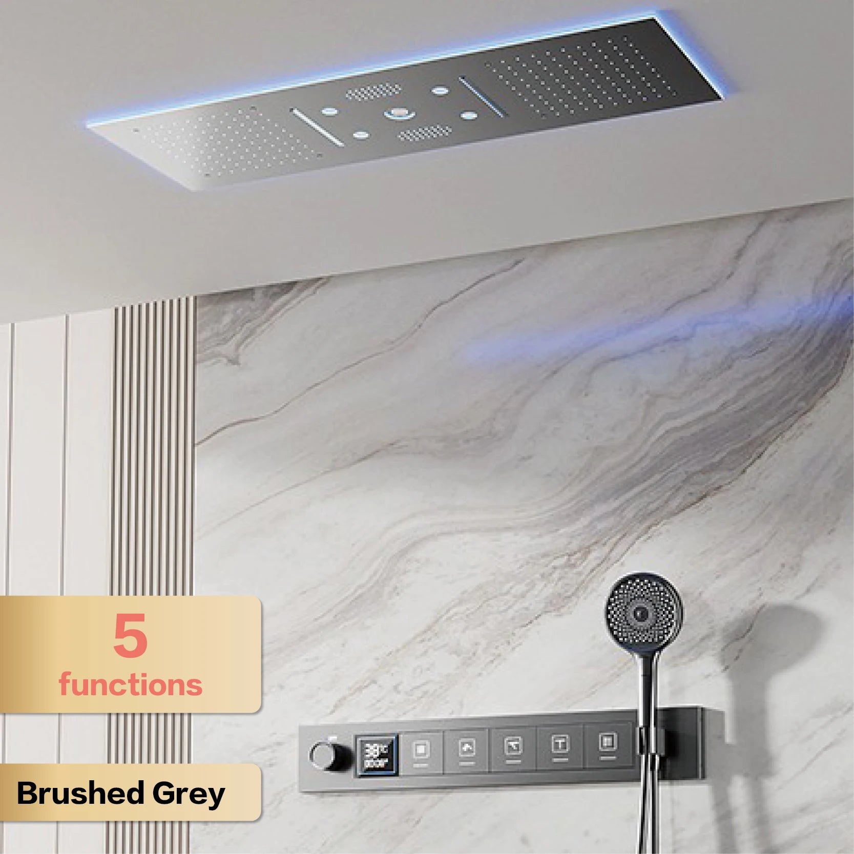 AITANA Luxury Brass Gunmetal LED Display Thermostatic Shower System Bathroom Ceiling embedded concealed giant curtain Rainfall