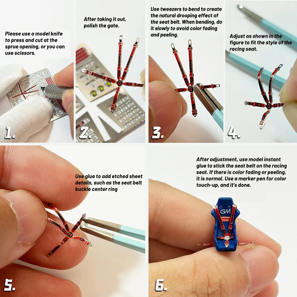 Alexen 1/64 Diecast Model Car Metal Seat Belt Toy Cars Detail-up Parts
