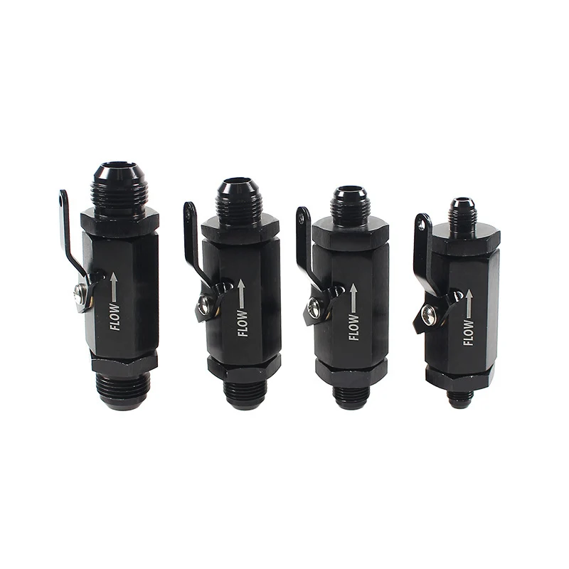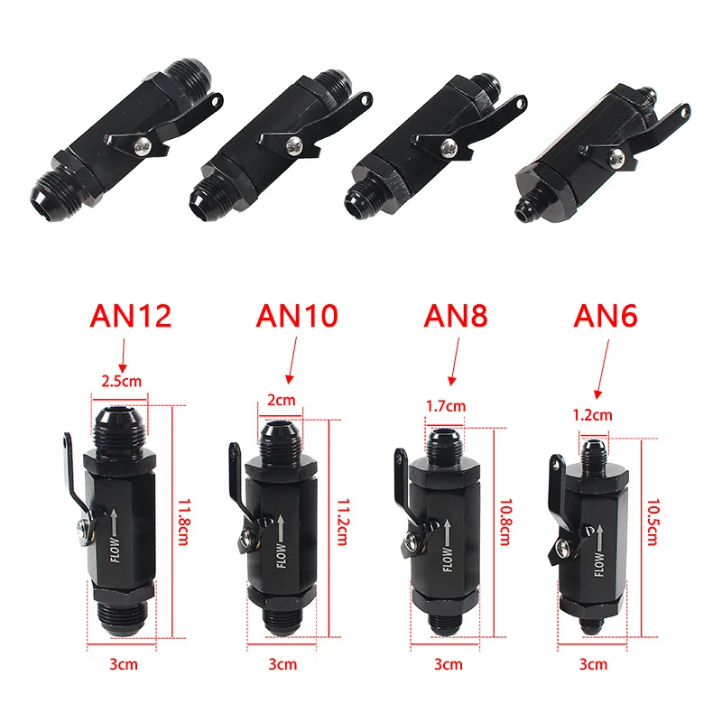 AN6-AN12 Aluminum Inline Fuel Shut Off Valve Cut Off w/ Cable Lever Black AN6 AN8 AN10 AN12