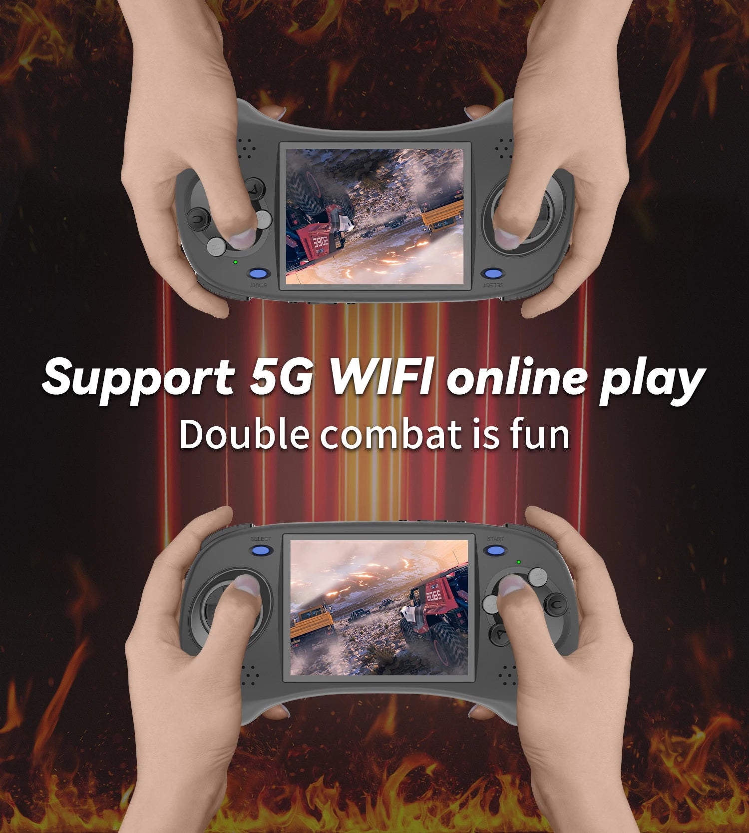 Game Console Built-in 2.4/5G WIFI 802.11a/b/g/n/ac,Bluetooth 4.2, New generation of 5G WIFI technology , Support built-in WIFI online pairing, Bluetooth handle function, vibration motor, support for 3.5mm stereo headphones, energy-saving settings, display brightness and other functional attributes of the display and free setting, supports wired handle (Linux), multimedia network play(Android ), Game Front End (Android) ect functions.