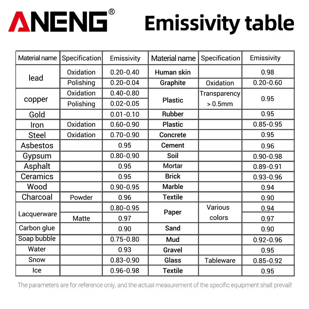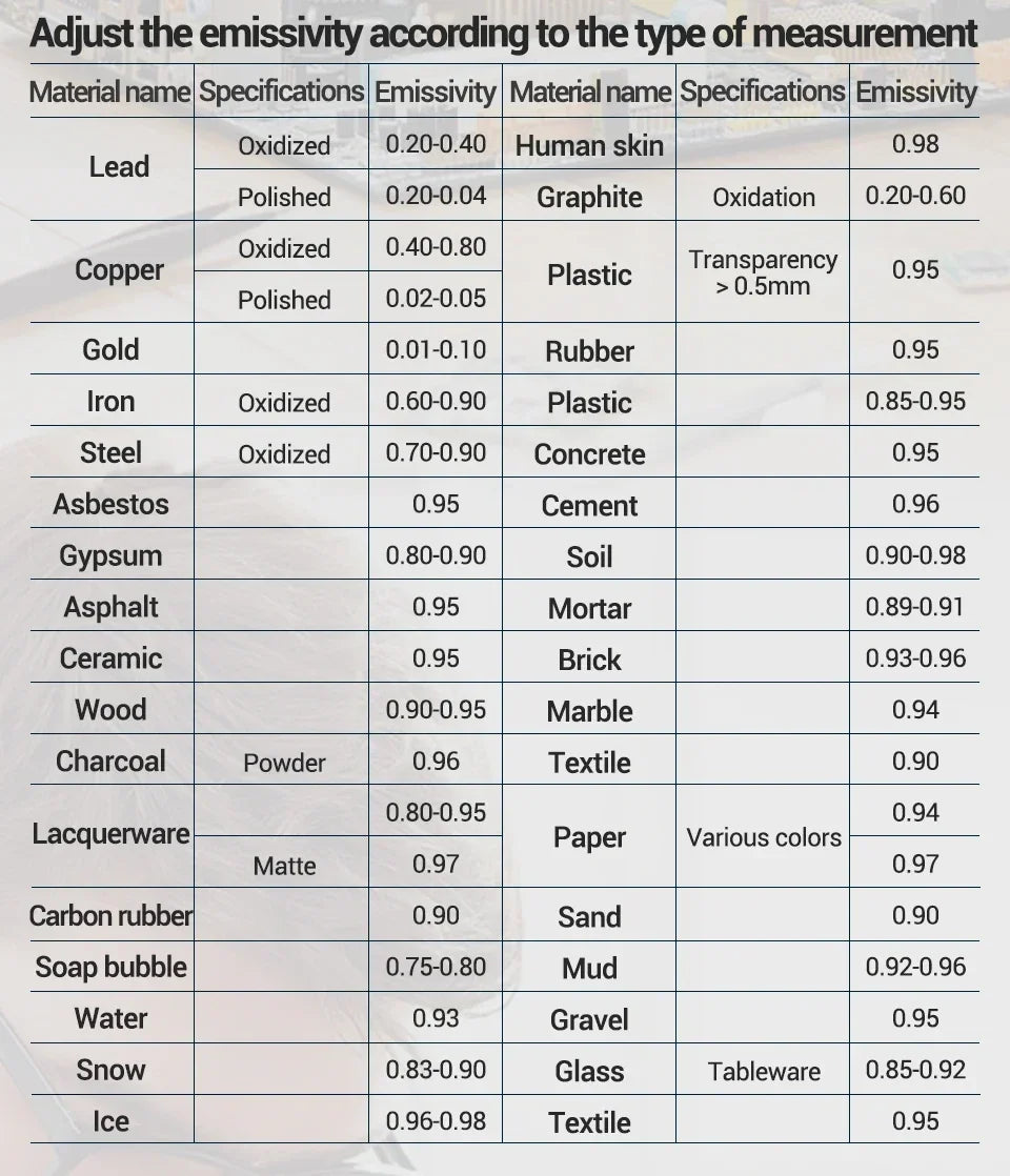 The measuring instrument cannot measure through transparent surfaces such as glass/plastic, otherwise the value measured by this instrument will be the surface temperature of the transparent object;