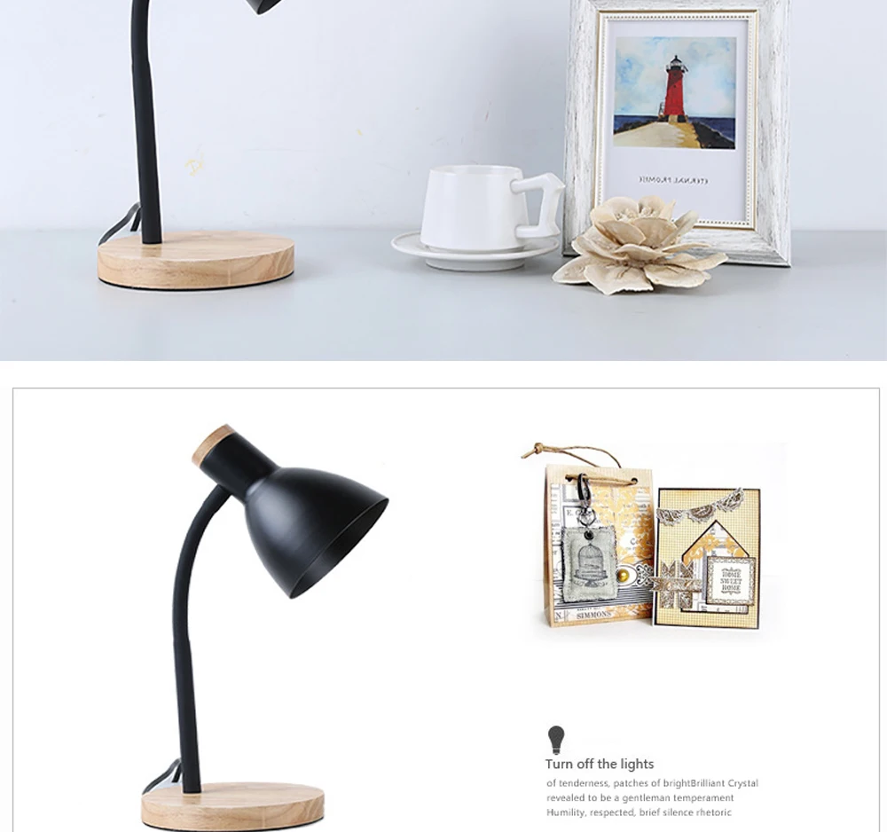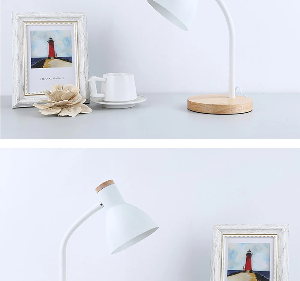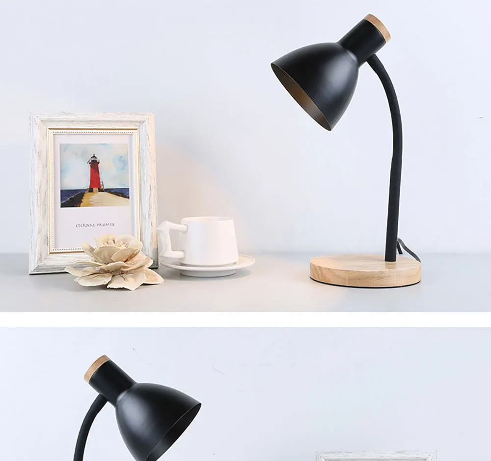 Bedside Table Lamp Nordic Desk Lamp Bedroom Study Lamps Wood Creative Flex Lights LED E27 For/Eye Protection Reading&Living Room