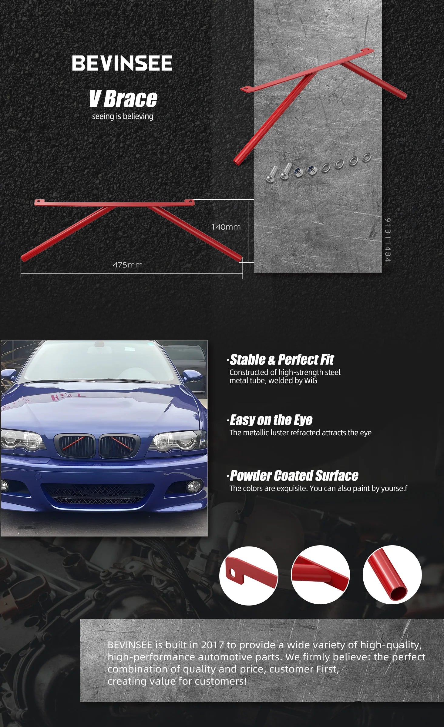 BEVINSEE Kidney Struts Kidney Struts Rods Tuning V Brace for BMW E46 323i 325i 328i 330i 1999-2006
