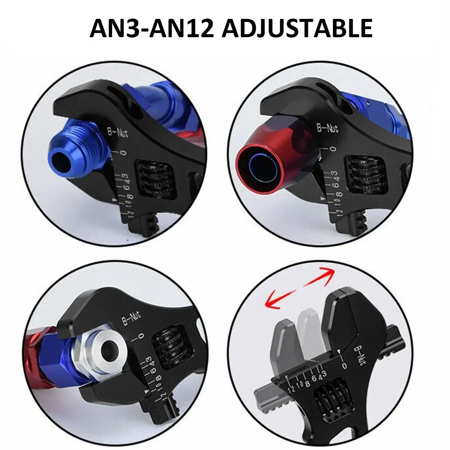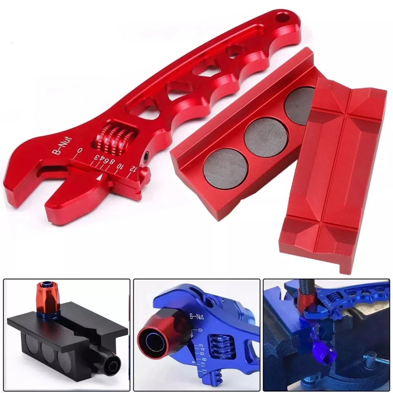 Billet Aluminum Adjustable Spanner Wrench + Vise Jaw Insert for Hose End Fitting Black Blue