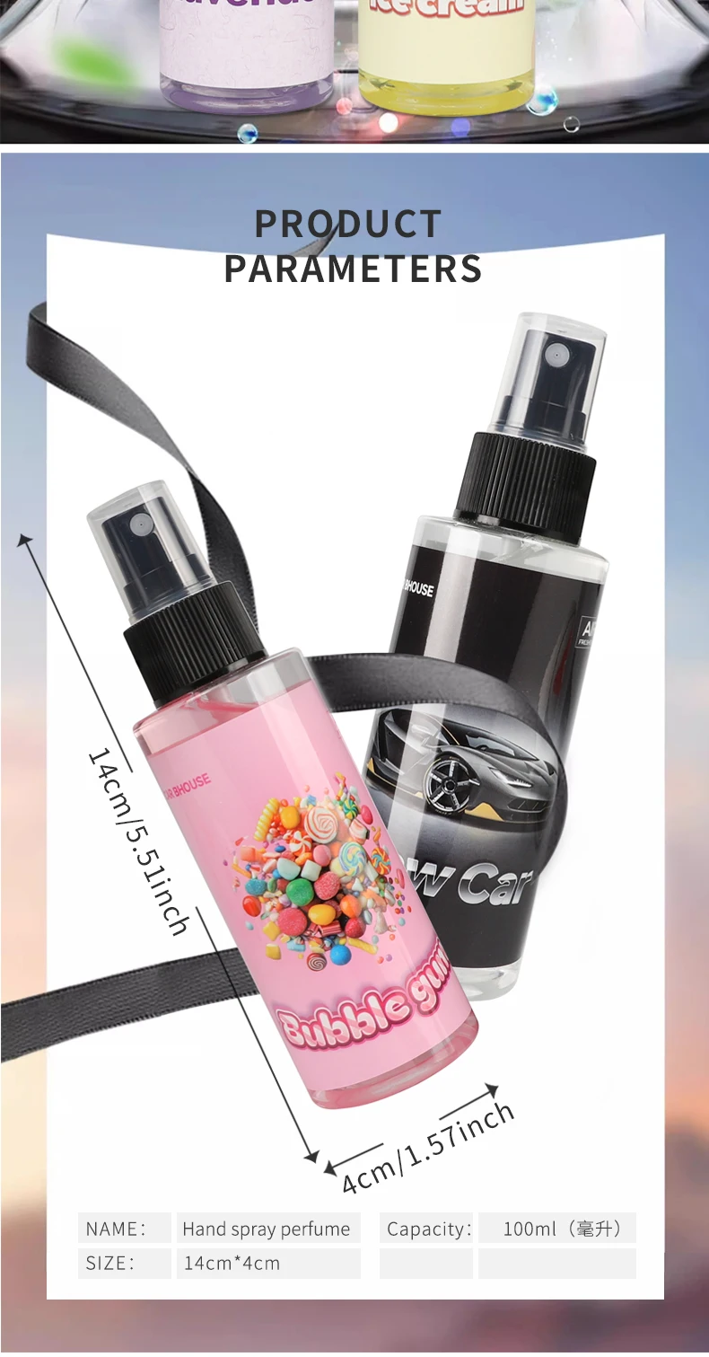Lightweight and portable: This air freshener is a handheld spray bottle with a capacity of 100ML, which is easy to carry in the vehicle or at home, bringing fresh fragrance to the air anytime and anywhere.
