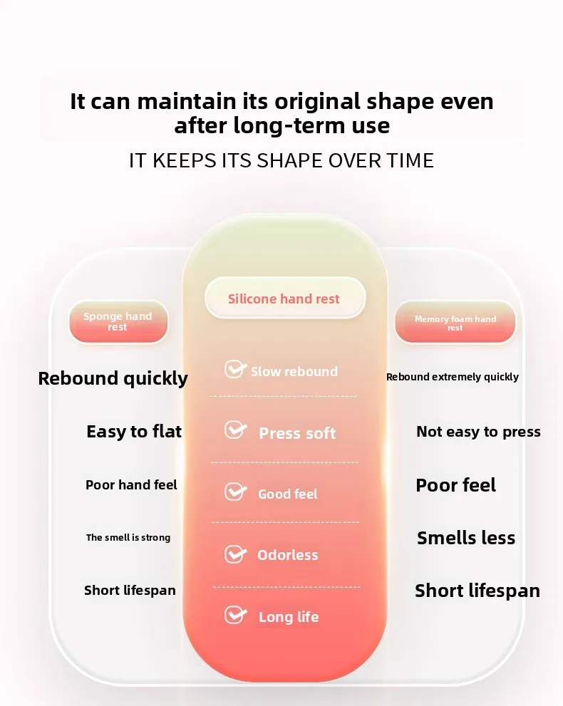 2. Comfortable Material: Made of silicone material, it has good elasticity and softness, providing comfortable support and touch for the wrist, just like providing a soft "little pillow" for the wrist. Long term use will not cause pressure on the wrist.