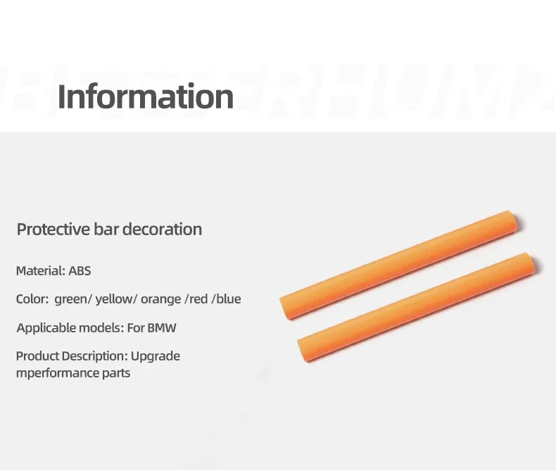 Suitable models: Style A: F20 F21 1ser(2012-2019) F22 F23 F44 F45 F46 2ser F30 F31 F34 3ser(2013-2019) F32 F33 F36 4ser(2013-2019) G30 G38 5ser(2018-2022) G32 6ser(2018-2022) G11 G12 7ser(2016-2021) F25 G01 X3(2011-2022) F26 G02 X4(2014-2022) G05 X5(2018-2022) Style B: G20 G28 3Ser(2020-2022) Note: For Left Hand Drive/ Right Hand Drive Materials: Advanced plastic material Colour: Green/Orange/Red/Blue/Yellow/Black Product advantages 【Sporty Design】: Perfect decoration, make your car look more attractive, and the modified atmosphere feels great. 【Original Car Mould】:Designed according to the precise data of original car, it is 360-degree full package, and the installation is more docile and beautiful, not like others PVC pipe cutting. 【High Quality】: Made of high quality ABS material, more corrosion resistant than PVC ,light weight and can withstand slight collision without deformation, scratch resistance, high temperature resistance, not fade, 【Easy Installation】:Just open the front grille, put the product on the water tank protection bracket, no need to drill or cut.