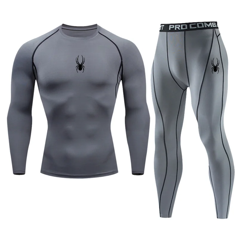 Gym Compression T-shirt Men's Long Sleeves Fitness Suit Sportswear Spring Autumn Outdoor Dry Fit Sports Running Tops 2-piece Set