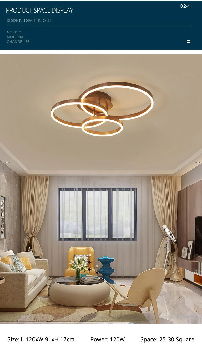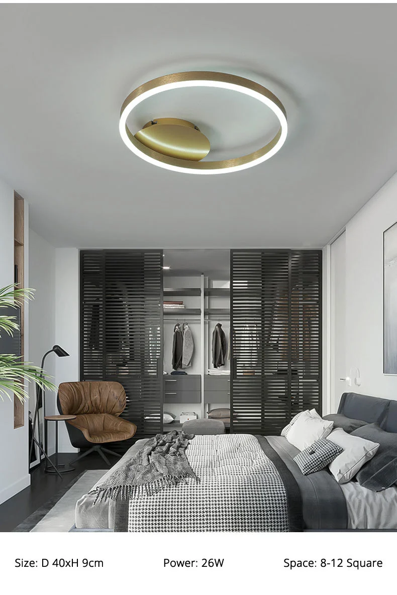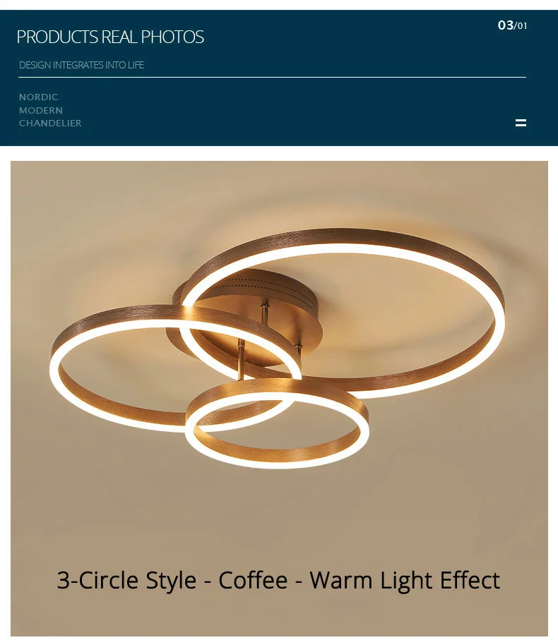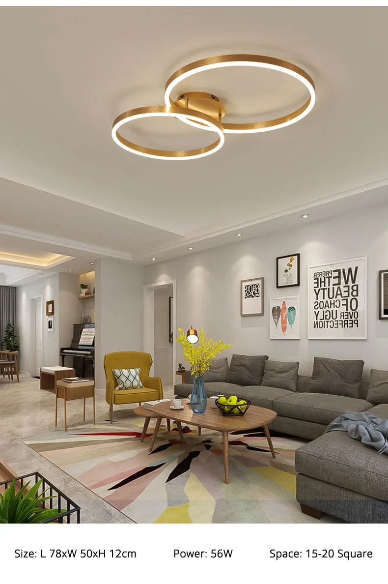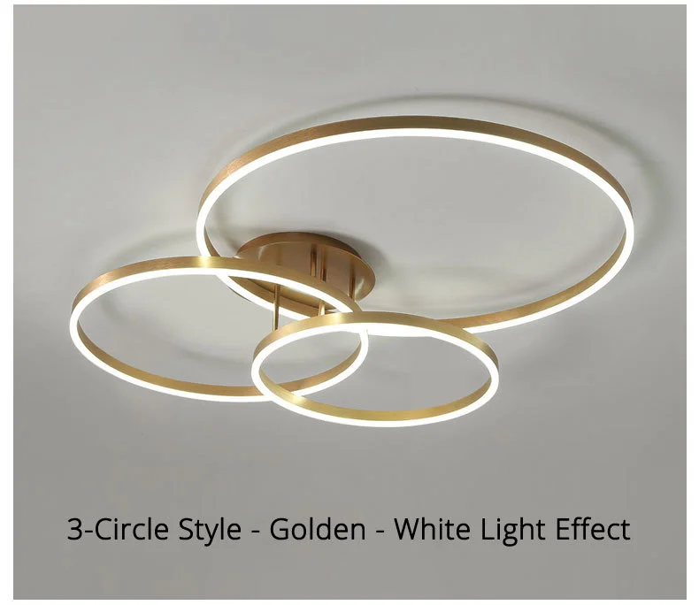 Household Gold Led Chandeliers 3 Circle Bedroom Metal Living Dining Room Lighting