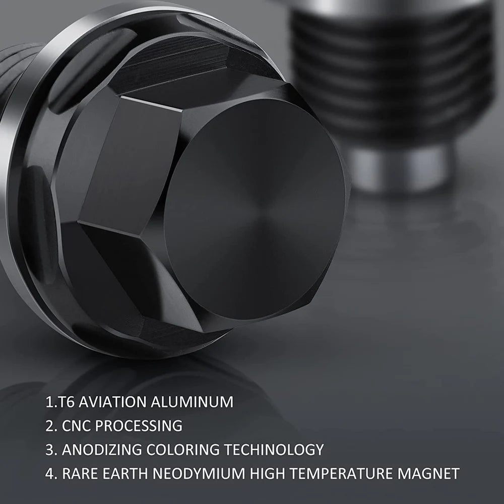 M14 x 1.5 Aluminum Magnetic Oil Drain Plug Fit for Honda / Ford / Hyundai with Crush Washer Gasket, Universal Magnetic Oil Drain