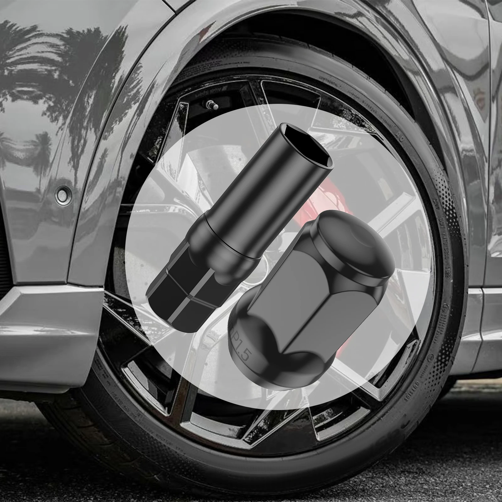 New 20Pcs Car Wheel Lug Nut Set 12mm Cold Forged Steel Black Threaded Wheel Lug Nut Auto Repair Parts For Car