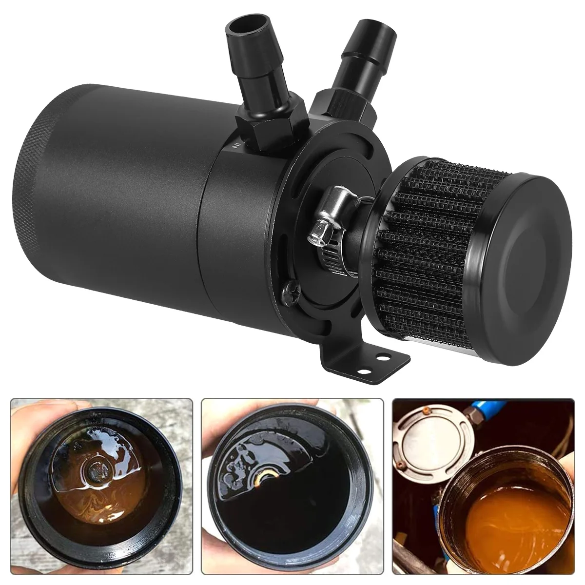 Oil Separator Catch Can Tank Kit with 2 Ports 150ml Aluminum Oil Reservoir Tank Drain Valve Filter 3/8inch NPT Fuel Line