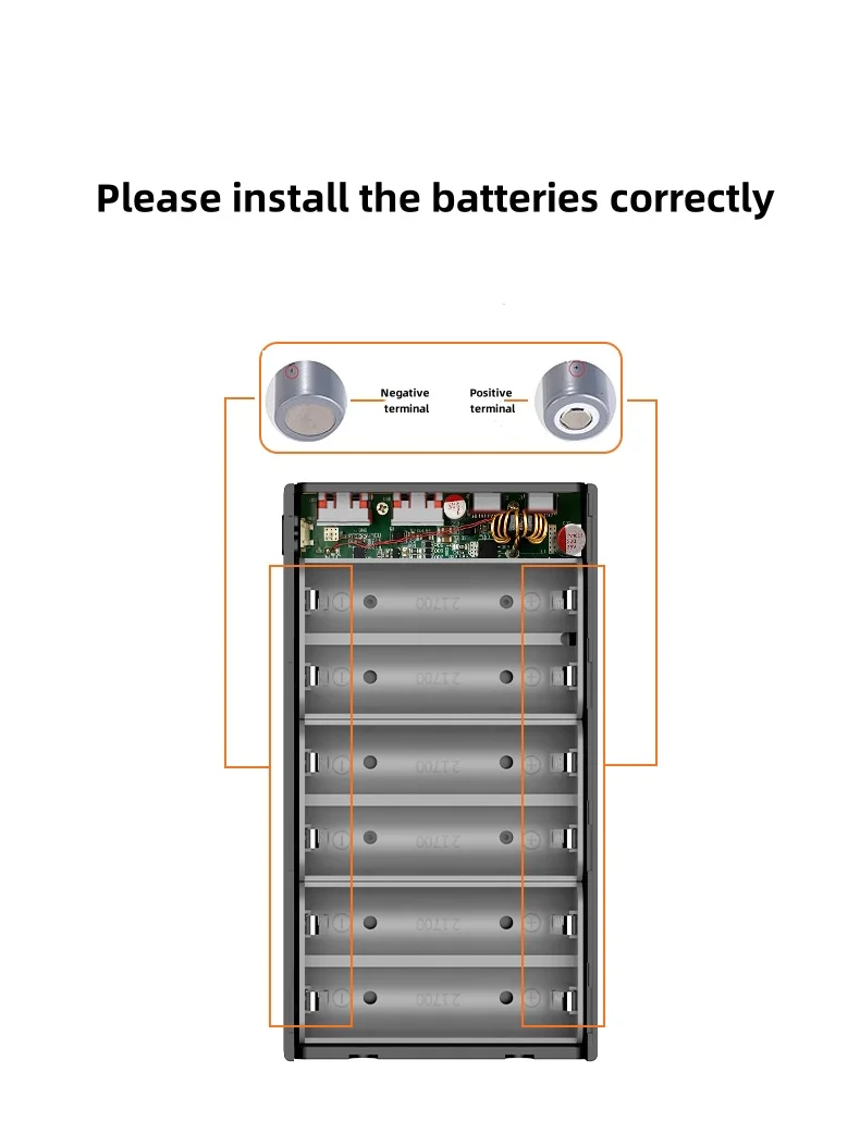 The ZY-Q6-100W Power Bank DIY Kit is a customizable, high-performance solution for fast charging. Designed to be assembled with 6x 21700 lithium-ion cells (not included), this power bank offers 100W maximum output, making it ideal for charging devices like smartphones, tablets, and laptops.
