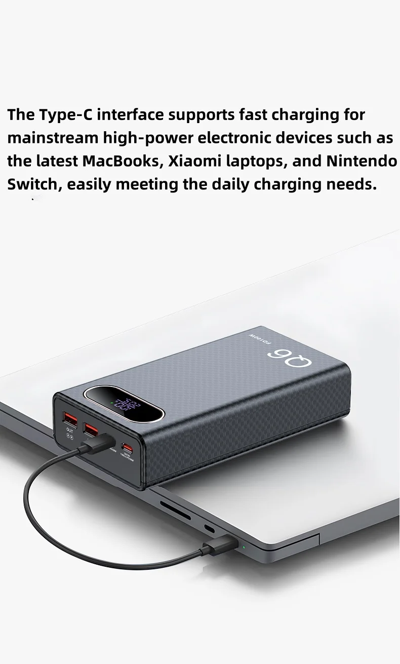 5000mAh Capacity & 100W Output: Supports high power output for fast charging of multiple devices.