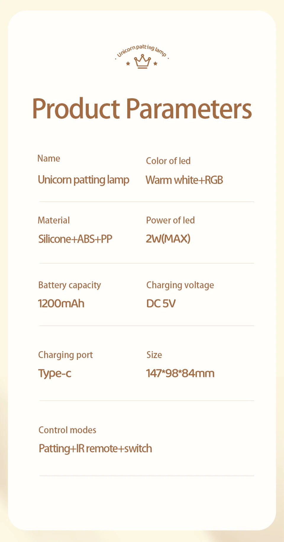 Rechargeable Silicone Patting Lamp Unicorn LED Night Lamp with Remote Control