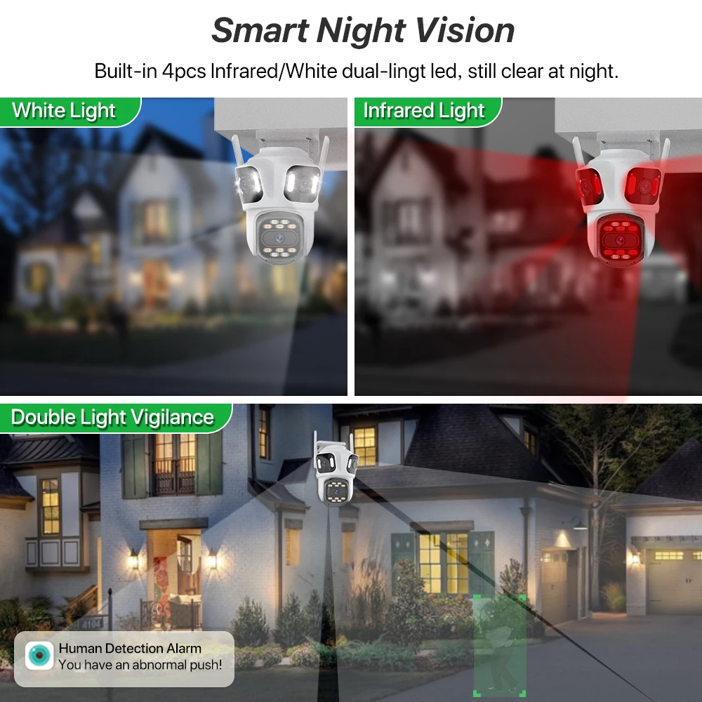 ●Dual light source design, built-in infrared light + white light, night vision infrared and night vision full color can be set;