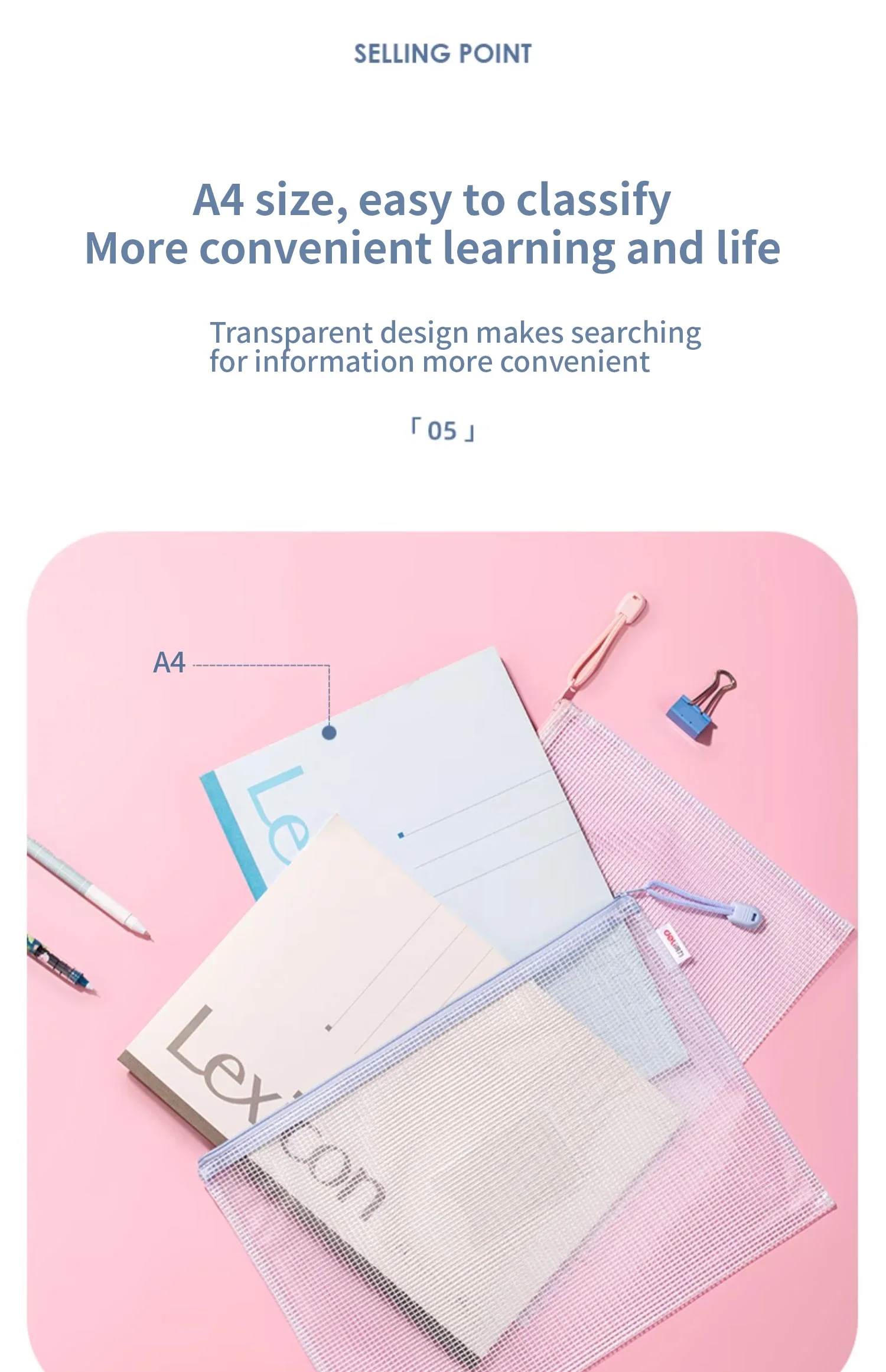 Zipper Mesh Bags A4/A5 Plastic Zipper Bags For Organizing Zipper Bag